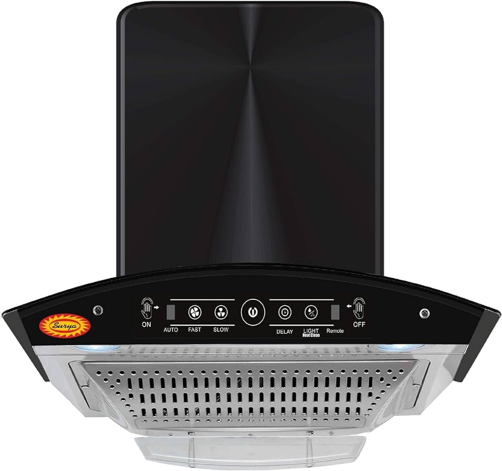 Surya electric chimneys are designed to enhance kitchen ventilation by effectively removing smoke, odors, grease, and steam generated during cooking. These chimneys feature robust construction with stainless steel or tempered glass finishes, offering durability and a sleek aesthetic that complements modern kitchen designs. Equipped with powerful motors and efficient suction technology, Surya electric chimneys ensure rapid and thorough air purification, maintaining a clean and odor-free kitchen environment. They typically include baffle filters or cassette filters that efficiently trap grease and solid particles, ensuring long-lasting performance and easy maintenance. Many models also come with features like touch controls, LED lighting for enhanced visibility over the cooking area, and auto-clean functions that simplify upkeep. Surya electric chimneys are available in various sizes and designs to suit different kitchen layouts and cooking styles, providing both functional benefits and aesthetic appeal to homeowners.